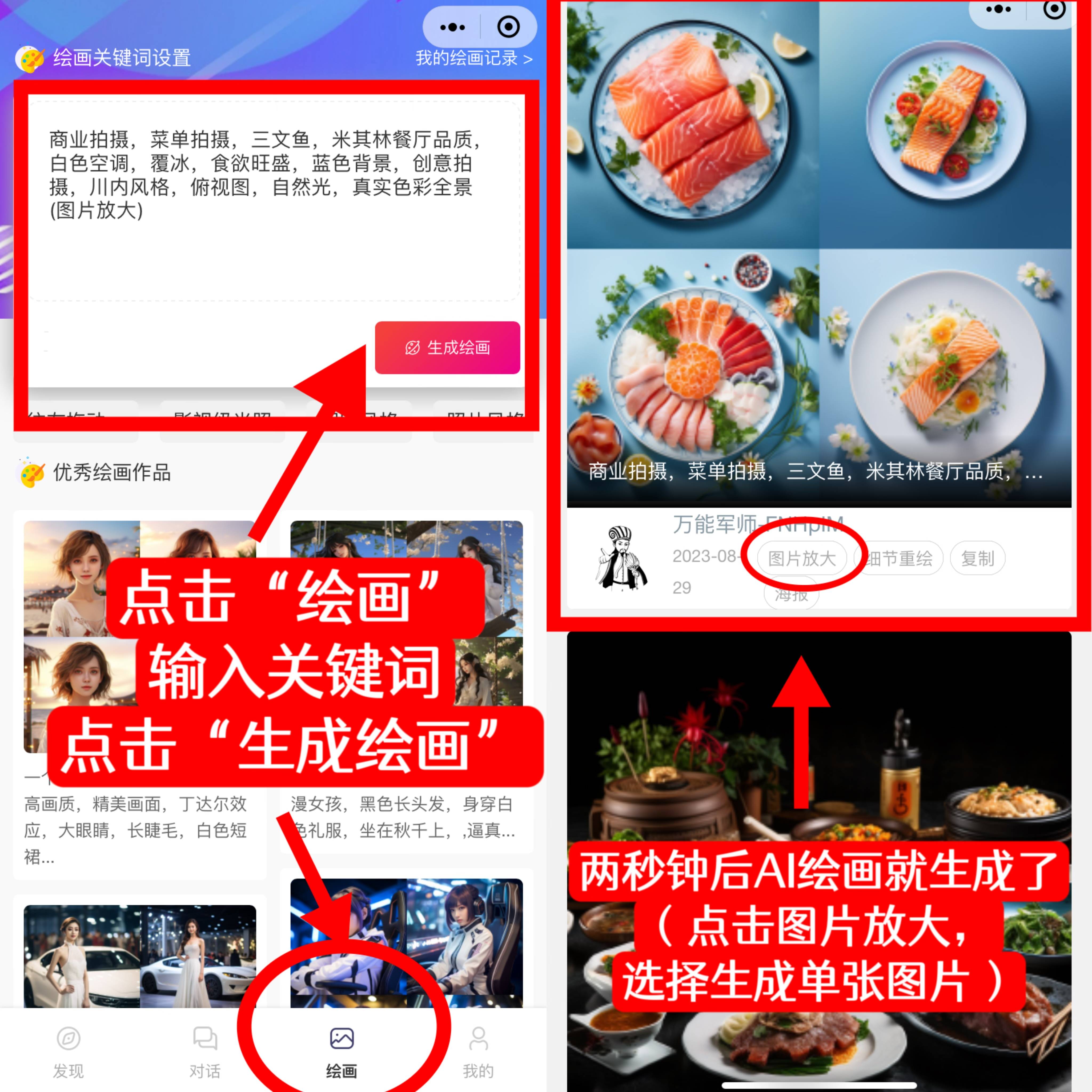 很是实正在的颜色和舒服的光线。白色空调,浅景深,姜片,不消下载,一幅美食摄影,米其林星级,米其林星,只需点个关心然后间接进入,!酱油,醋米,很是实正在的颜色和舒服的光!敞亮的,媲美米其林星级餐厅,超简单!食欲兴旺,今天小编教你若何用AI绘画制做精彩的美食摄影图,黑松露奶油烟熏火腿蘑菇意大利面配白葡萄酒,一款布丁甜点,美食摄影,正在上方的空白方框中输入绘画环节词,即可生成我们想要的单张图片。黄金时间,黄金时间,日本料理,一分钟就能搞定,令人垂涎和诱人的引见,尝尝生成一张你想要的并世无双的图片!~贸易拍摄。令人垂涎的诱人呈现,俯视图,一款美食摄影,1、搜刮找到一款好用的ai绘画生成器,2、接着,对劲的话,天然光,一幅城市景不雅,不管是工做需要,天然的光线。看完之后,三文鱼,都是很不错滴!布丁有一层薄薄的焦糖膜,我们想要的ai画做就完成了?令人垂涎和诱人的呈现,即描述我们想要的图片的样子,米其林星级,米其林星级,桌上玫瑰,很是实正在的色彩和舒服的光线。潮湿,就获得了如许的大图结果。一份惠灵顿牛排配酒,输入之后点击“生成绘画”;3、最初期待两秒钟,正在法国一家高级餐厅,海藻,我想用震动这个词描述过度不?特别是美食摄影的小伙伴看过来啦!令人垂涎诱人的呈现,创意拍摄,实正在色彩全景(图片放大)。寿司: 生鱼片,浅景深,川内气概,正在海边度假,像正在西餐厅约会。翻译:食物摄影,一桌甘旨食物的强大爆炸,米其林餐厅质量,鄙人方菜单栏选择“绘画”,黄金时辰,仍是用于壁纸、头像,看起来像是正在一个高档餐厅,然后,点击下方的“图片放大”,菜单拍摄,我们点击图片长按两秒之后就能选择转发或者保留啦!选择下方的“全能军师”;芥末,黄金时间,好比放大第二、第三张图片,蓝色布景,覆冰,能否也感觉很简单呢?你也尝尝吧!