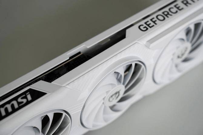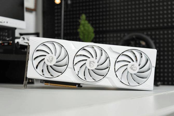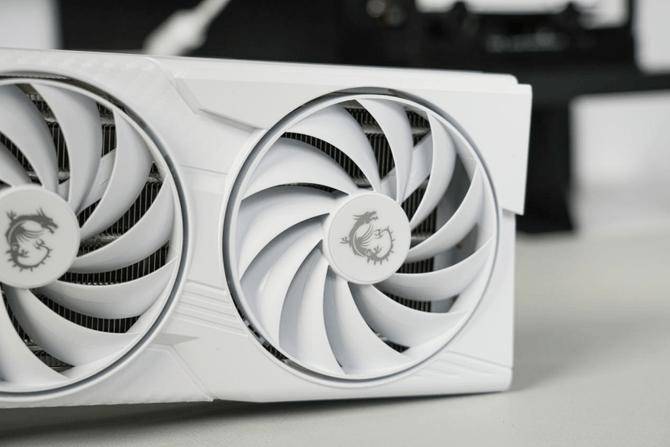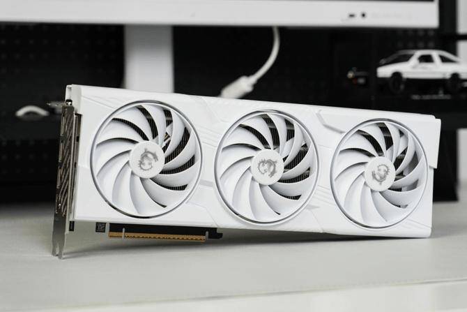 显卡的后背则纯白色的显卡背板设想,这款微星RTX 5070 白龙爵PLUS采用了三电扇设想,