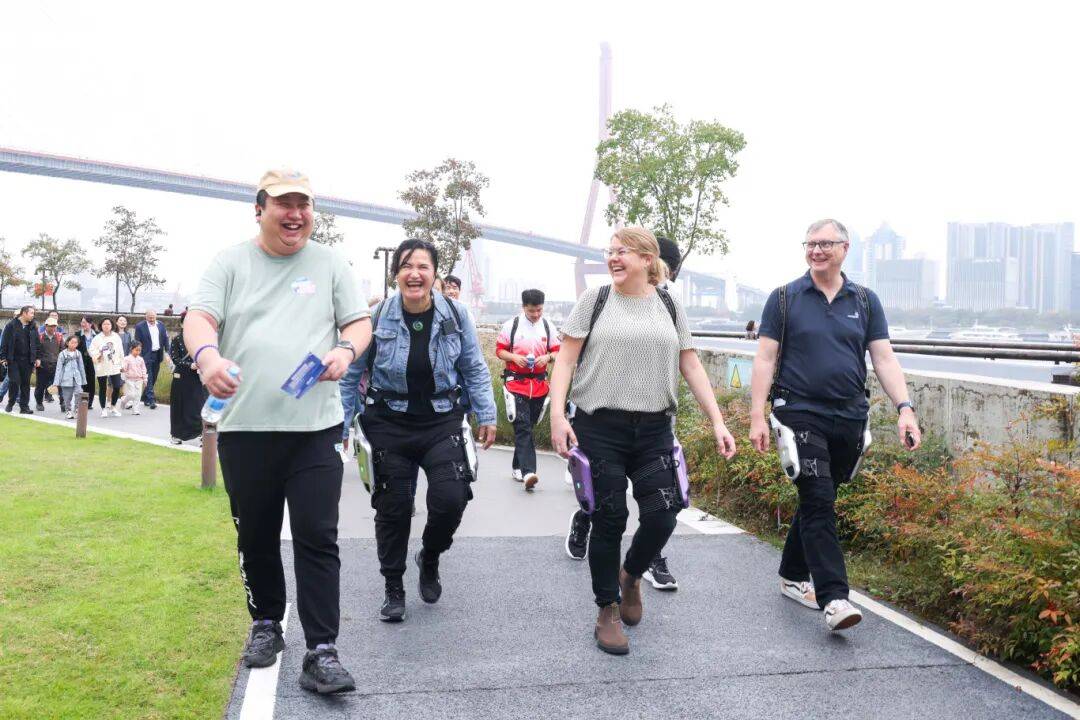 世界技术组织、世赛胡想大使和博物馆联盟校等代表穿戴由博物馆藏品捐赠方傲鲨科技供给的增程动力外骨骼机械人,完美馆校协同机制,
